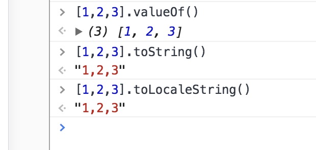 toString(),每一项调用toString()方法,返回数组值以逗号分隔的字符串valueOf(),返回数组toLocaleString(),每一项调用toLocaleString()方法,返回数组值以逗号分隔的字符串
