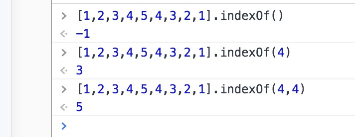 indexOf() => 从前到后搜索第一个出现的查询项,参数一是要查询的项,参数二(可选)是查询的起始索引,查询到返回索引,没查到返回-1