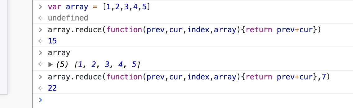 两种方法不同于遍历方向,一个正向,一个反向,都传入两个参数,参数一是每项执行函数(函数参数包括prev前一项,cur当前项,index索引,array原数组),参数二(可选)是做为归并基础的初始值