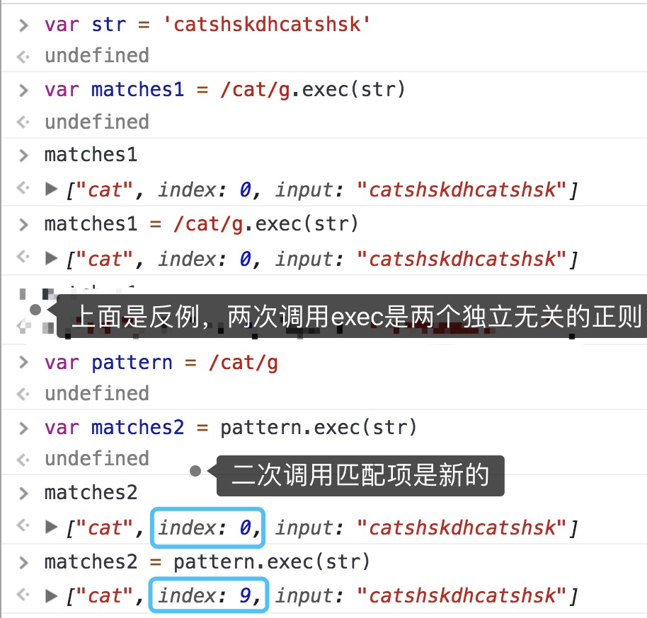 ⚠️g全局模式每次都返回一个匹配项,但是对同一个字符串多次调用exec会继续查找新的匹配项,否则非全局下每次都返回第一个匹配项