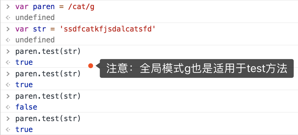 全局模式下,当第二次查找的时候会从上次匹配项后面开始查找至结尾返回false