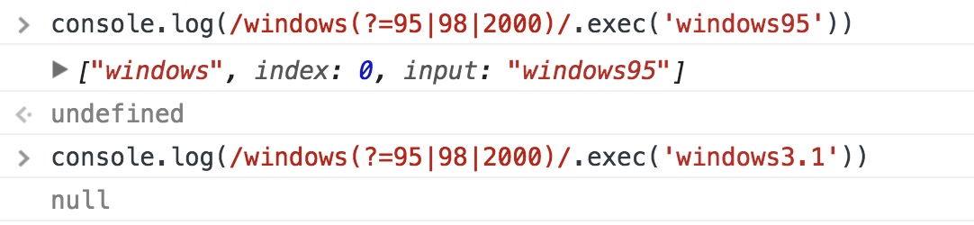 (?=pattern) 非捕获的匹配,正向肯定预查,在任何匹配pattern的字符串开始处匹配查找字符串