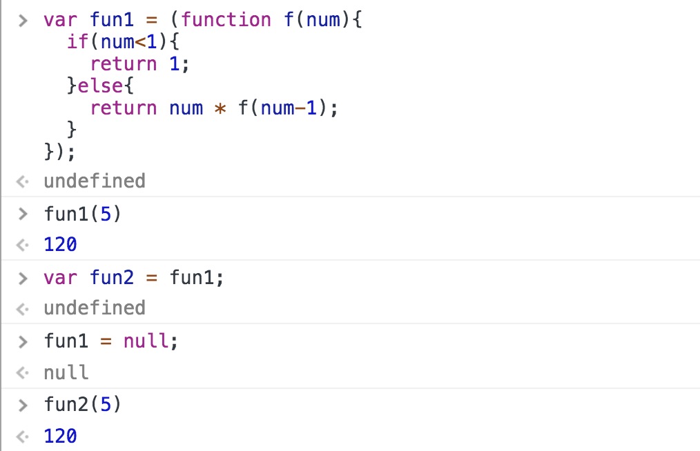 1 | var fun1 = (function f(num){ |