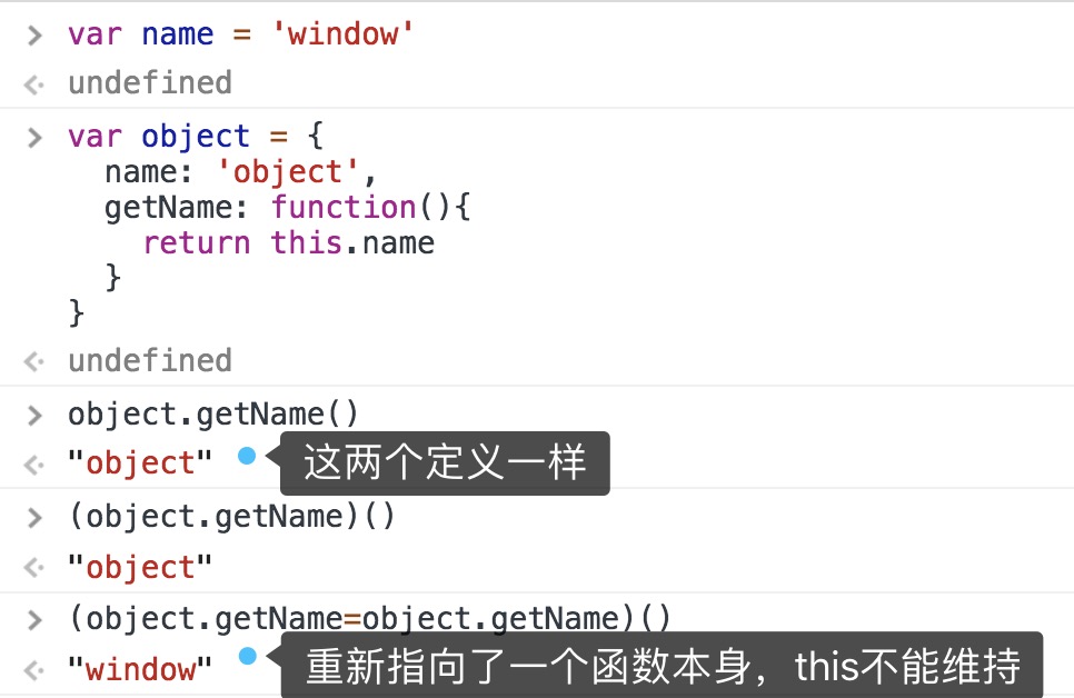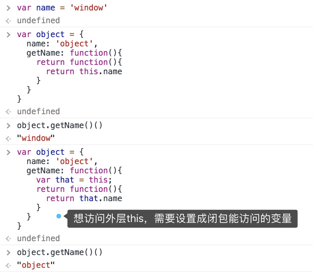 ⚠️解释2:this是基于函数的执行环境绑定的,上面的调用方式最终的闭包是在全局环境下执行的,this指向了window