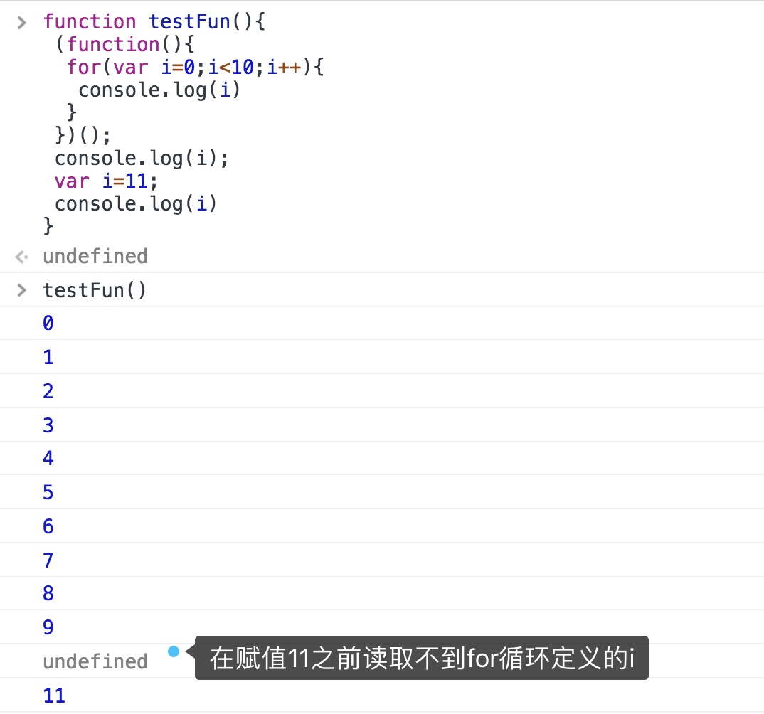 解决方案:创建立即执行闭包,将i每个状态作为参数传递进去(利用的是函数参数按值传递的特性)