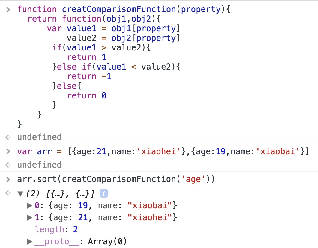 🌰排序数组,但数组的每一项是对象,希望按照对象的某个属性值进行排序1