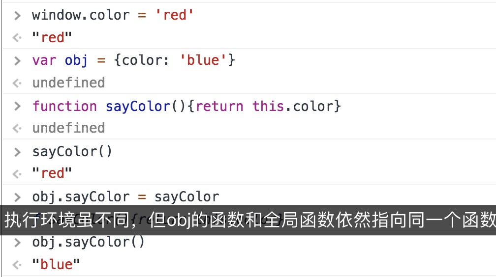 函数据以执行的环境对象(当在网页全局环境下调用,this指window),执行时确定this非定义时确定