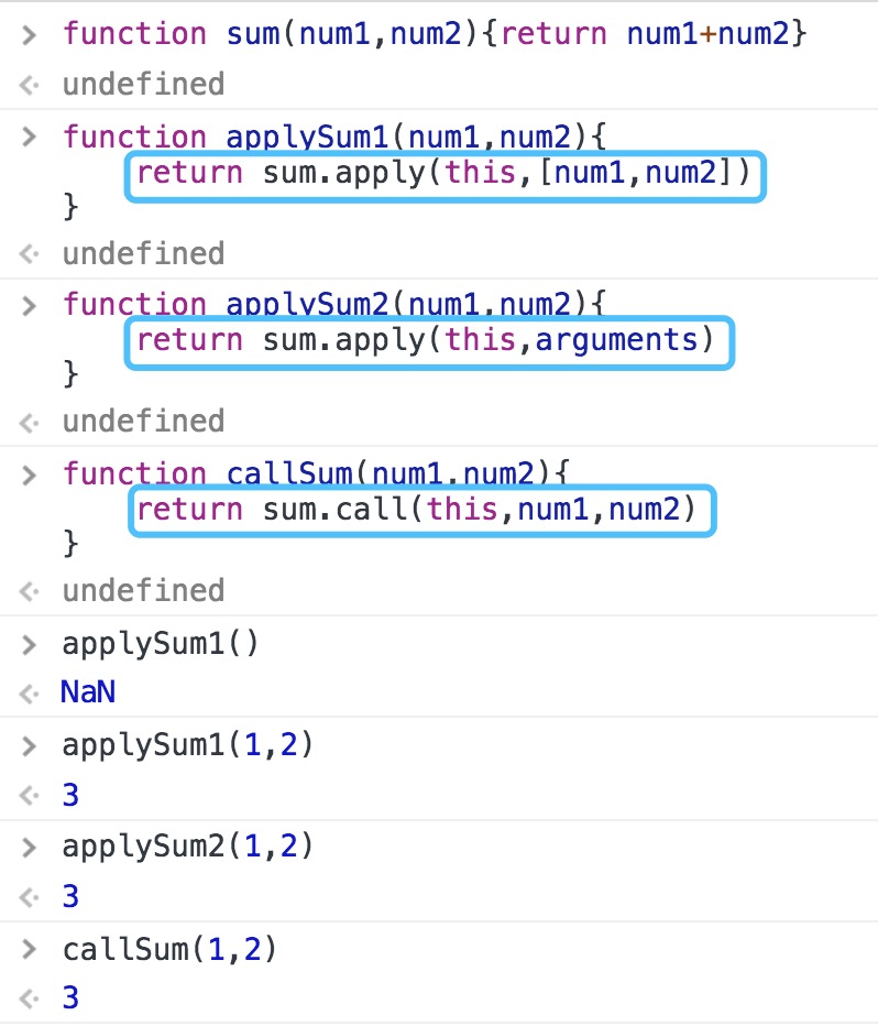 ⚠️两者选取取决于哪种给函数传递参数更方便,如果直接打算传递arguments,或者包含函数中先接收到的也是一个数组,那就用apply,否则就用call更合适,不传递函数参数的情况下哪种都一样