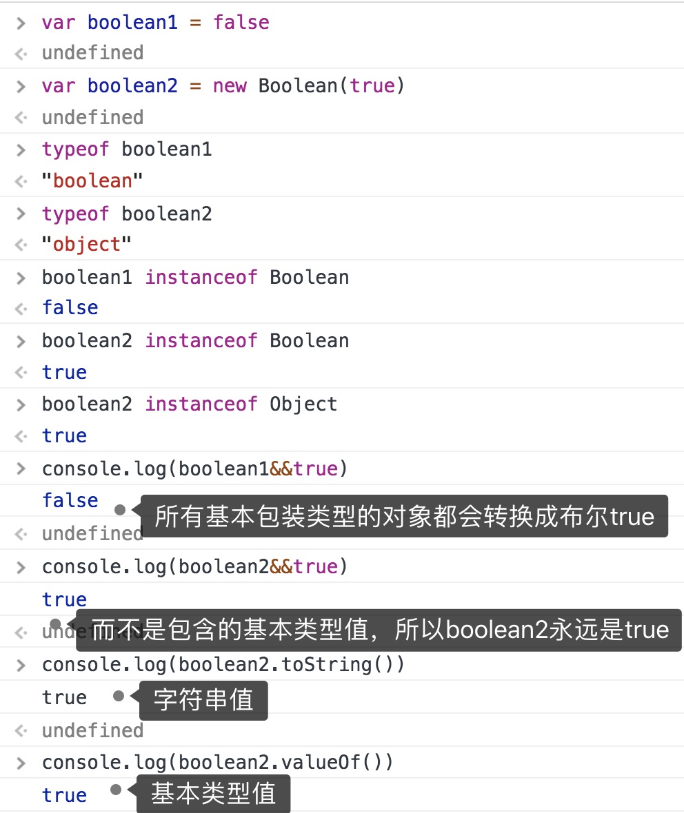Boolean Number String构造函数法 => 绝对必要情况下再做,不然容易分不清处理的是基本类型还是基本包装类型1