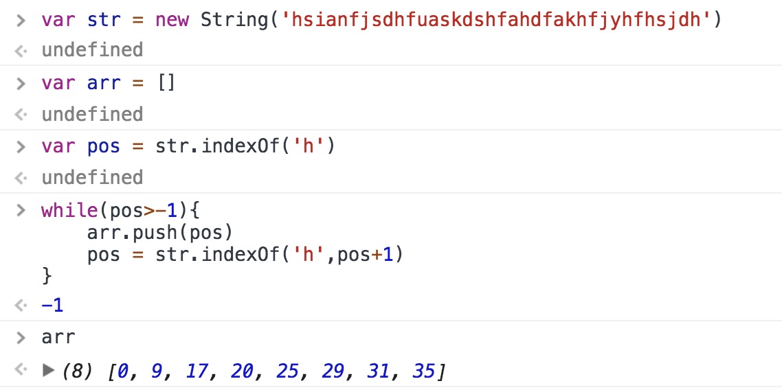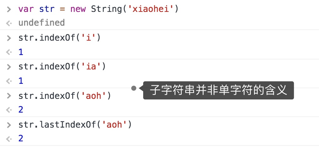 indexOf()/lastIndexOf() 正向/反向搜索子字符串位置,参数一是给定搜索的子字符串,参数二是开始搜索的起始位置(选参),返回给定子字符串的索引,没查到返-1