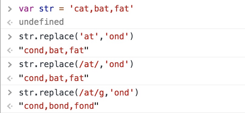 参数一是字符串(只能替换第一个子字符串)/正则(g标志可以替换全部子字符串);
