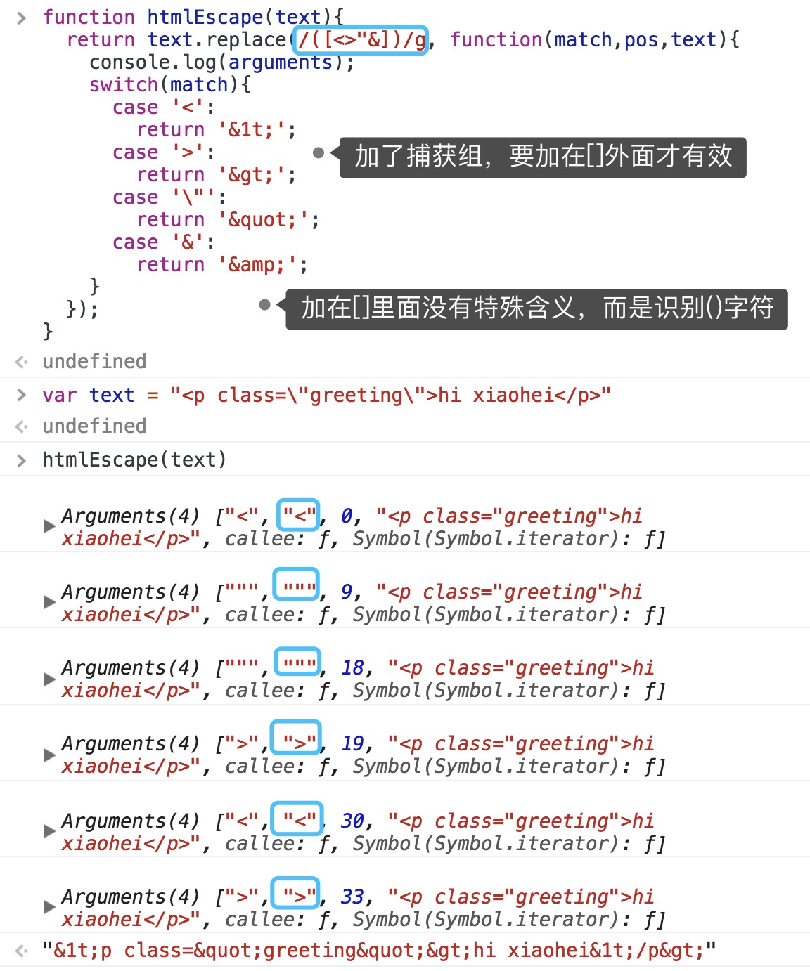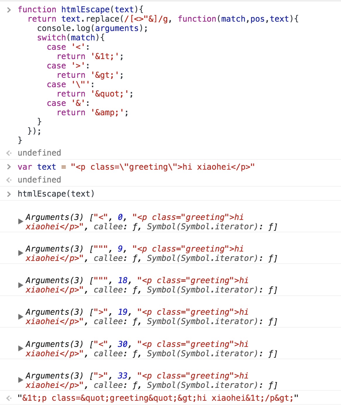 参数二是字符串(可以将正则表达式得到的值插入到结果字符串,由一些特殊字符序列表示)/函数(返回被替换的匹配项,情况1:仅一个匹配项,即无捕获组,函数参数是匹配项、匹配位置、原始字符串;情况2:存在捕获组时,函数参数是匹配项、第一个捕获组、第二个捕获组…、最后两项依然是匹配位置、原始字符串)