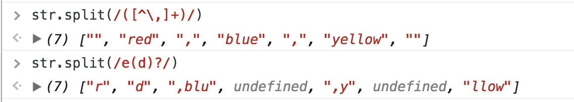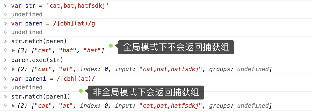 规定应把捕获组拼接到结果数组中(IE9+),捕获组没匹配到返回undefined,下图延续上图上下文