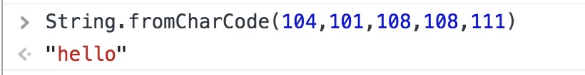 fromCharCode() String构造函数的静态方法,接收多个字符编码参数,返回字符串,本质与实例的charCodeAt()相反功能