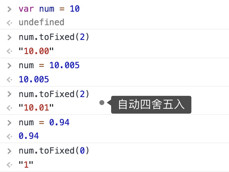toFixed() 按照指定的小数位返回数值的字符串表示