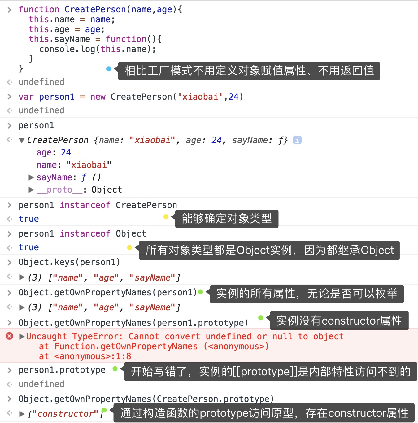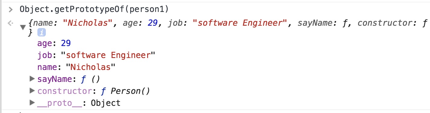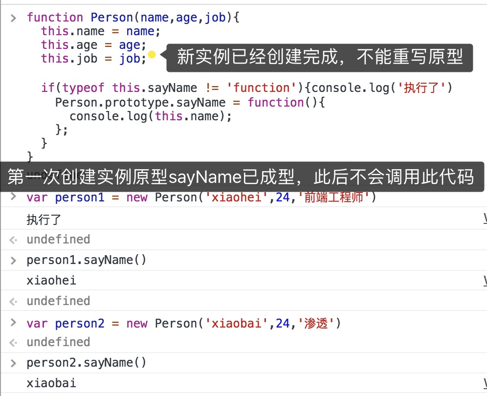 ⚠️这种方式,除了使用实例的sayName方法外没有别的途径能访问name属性、即便能为对象添加其他属性,也不能更改原始属性数据