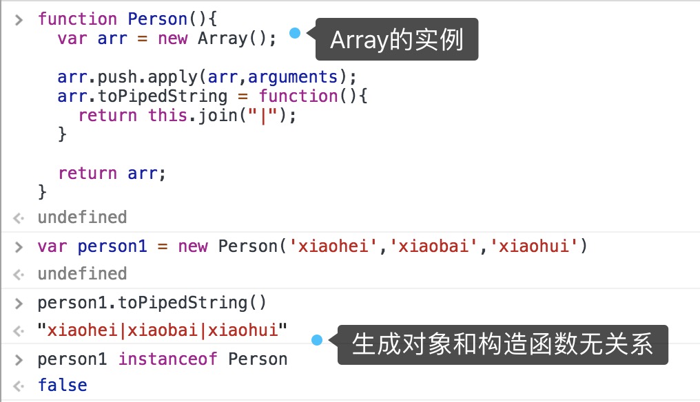 <!-- 返回F实例,实例的[[prototype]]指向o -->