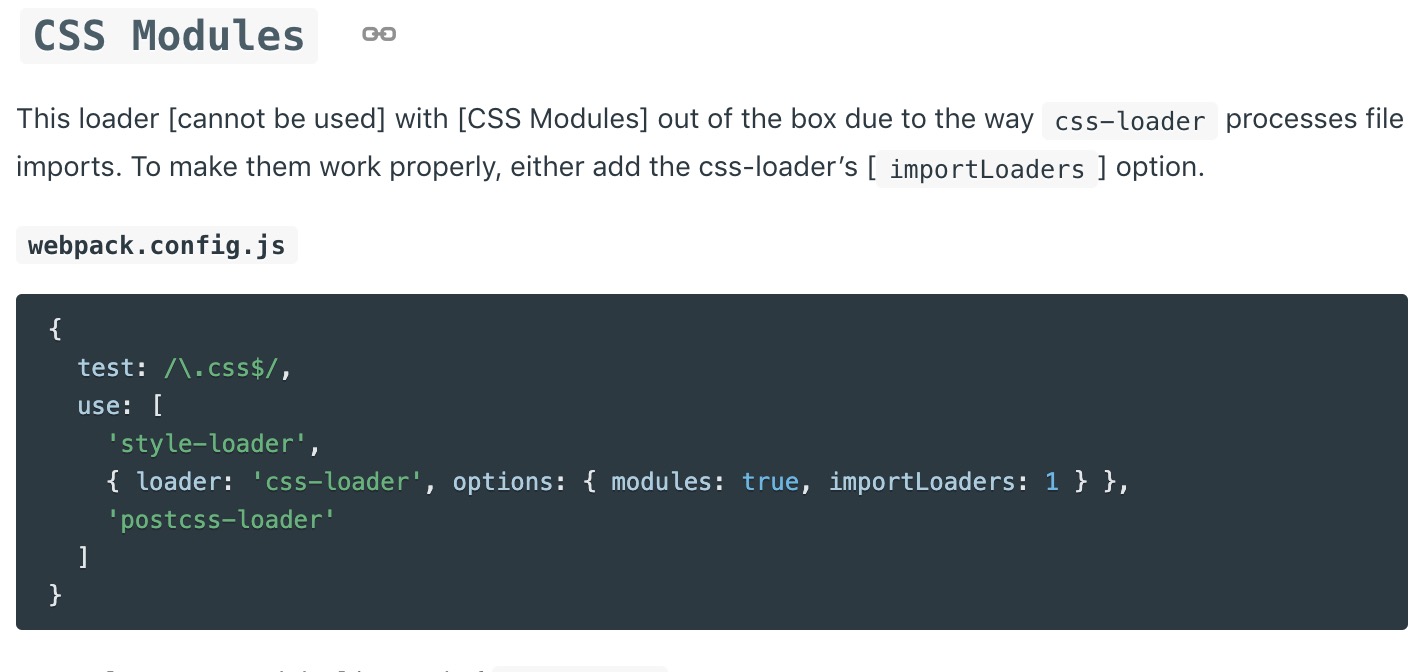 但是webpack这里描述开启modules是加上importLoaders没找到解释